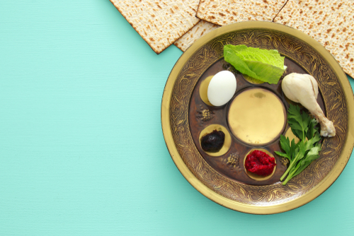 Na tanjiru za Seder večeru nalaze se jela koja podsećaju na ključne trenutke opisane u Knjizi izlaska (drugoj knjizi Tanaha, odnosno Starog zaveta): tri macesa (beskvasni hleb)- simbol jada i nevolja, krilo kokoške ili kolenica jagnjeta (što podseća na pashalnu žrtvu), bejca (jaje) - koje podseća na razaranje Hrama i predstavlja tradicionalnu hranu za ožalošćene, maror i hazeret (gorke trave i ren) - sećanje na gorak život Jevreja u ropstvu, haroset (mešavina oraha, seckanih jabuka i vina) - simbol blata od kojeg su Jevreji zidali egipatske gradove, karpas (list celera ili peršuna) - simbol novog života, slana voda u koju se umaču gorke trave u spomen na prolivene suze za vreme ropstva.